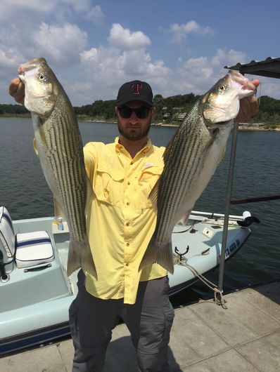 White Bass, also known as Sand Bass are one of my favorite fish to target. They are found in most lakes and rivers in the area and can be targeted year round although the action slows down in the winter. I believe the best lakes in the area for White Bass are Ray Roberts, Lavon, and Ray Hubbard. In the summer you can find schools of bass on the lake surface chasing bait-fish and that can make for some great top water action. While the lake fishing is excellent the real fun is in the spring when the bass run up creeks and rivers from the lakes to spawn, with the areas around Lavon and Ray Roberts being my favorite. The fishing is fun, fast and very forgiving to those just learning. It is not uncommon to catch 20 or more fish in a half day.